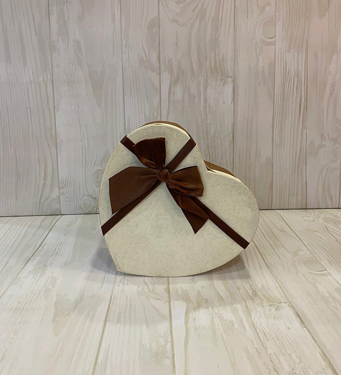Kalp Kutu Krem Kahve Fiyonklu Küçük Boy