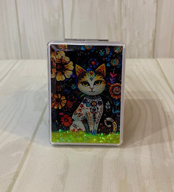 Kedi Tasarımlı Simli Sulu Kapaklı Cep Aynası Model:1