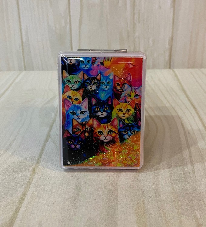 Kedi Tasarımlı Simli Sulu Kapaklı Cep Aynası Model:11