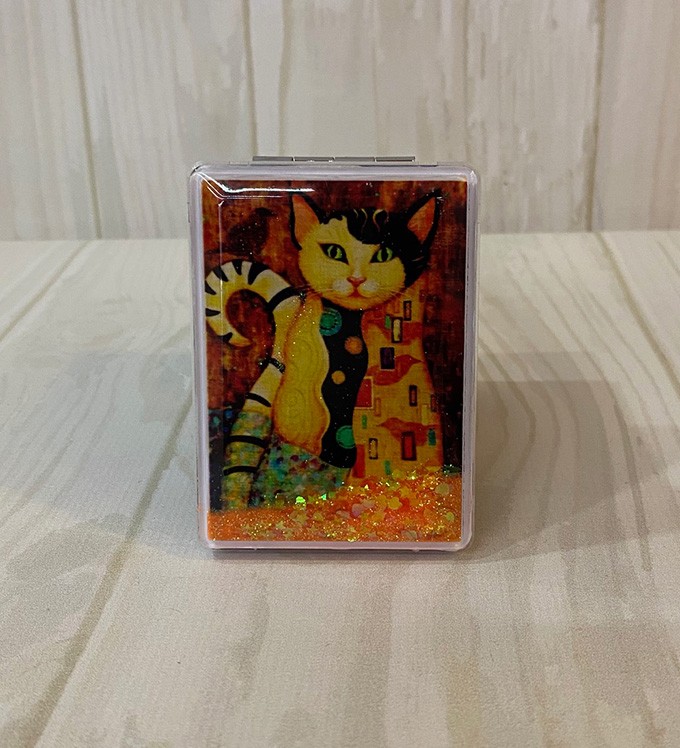 Kedi Tasarımlı Simli Sulu Kapaklı Cep Aynası Model:2