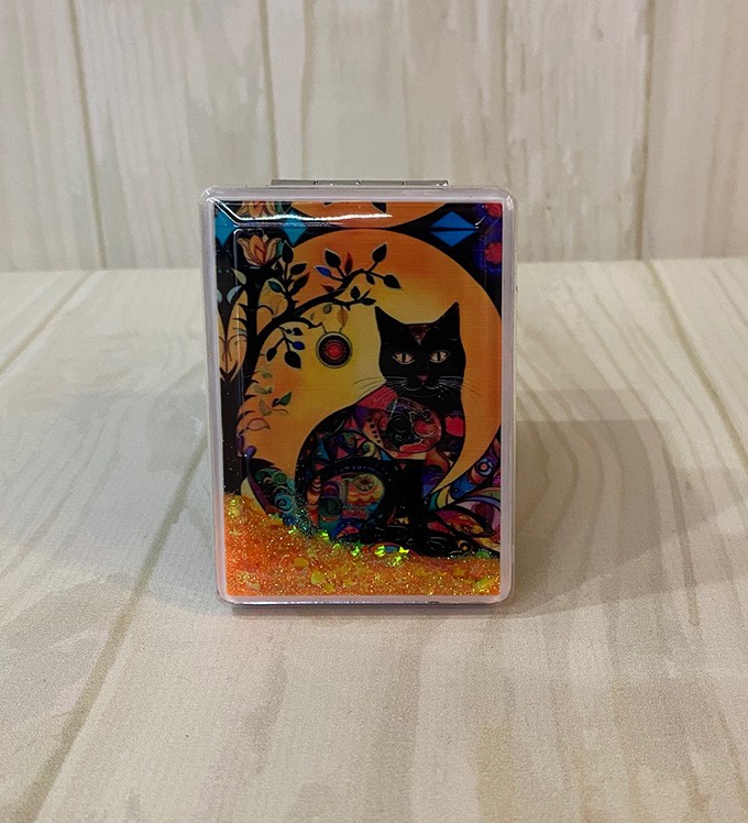 Kedi Tasarımlı Simli Sulu Kapaklı Cep Aynası Model:8